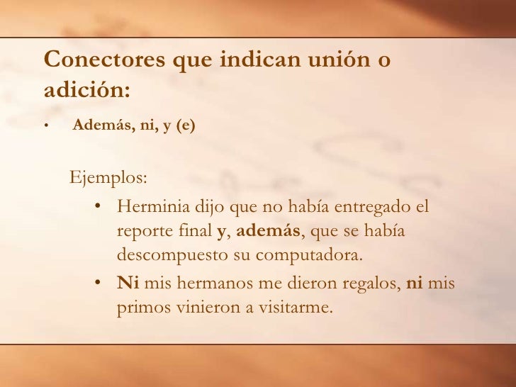 Son palabras de enlace que sirven para unir ideas frases oraciones párrafos.